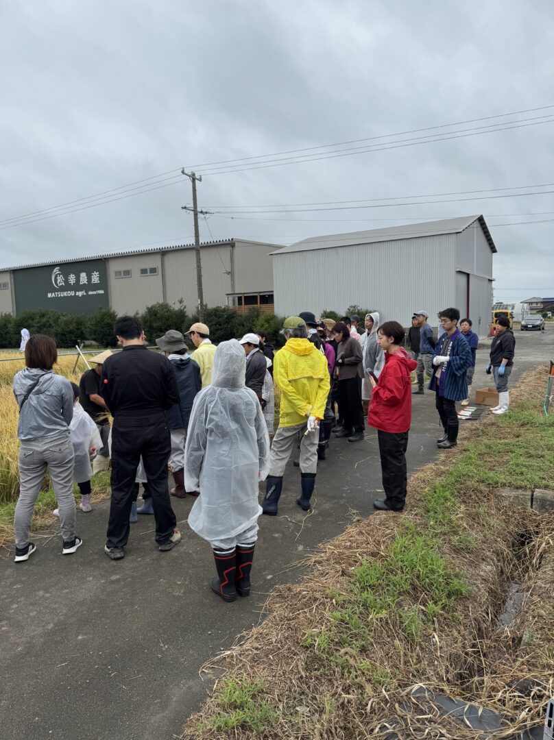 神事ののち、参加者は田んぼへ移動し、神の穂の刈り取りを体験。酒米が日本酒になるまでの“はじまり”にふれることで、一本のボトルに込められた多くの手仕事と時間を感じていただけたと思います。