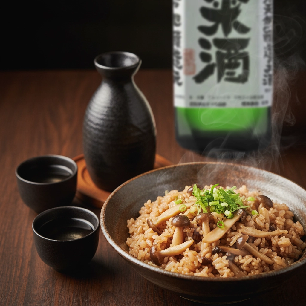 だしの旨みと熟成感が共鳴。余韻が長く、箸が止まりません。 - きのこご飯 × 純米(ぬる燗)